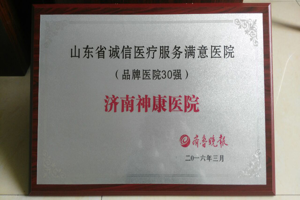 济南神康医院获“2016山东省诚信医疗服务满意医院”(品牌30强)