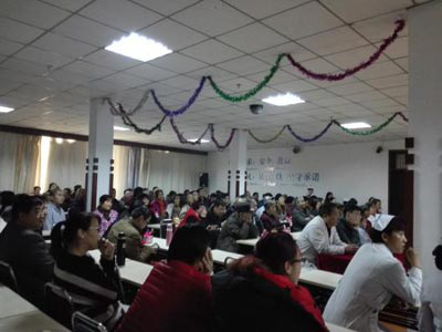 2015年12月25日对于济南神康医院全体工作人员来说注定是欢乐的一天。早上,记者走进济南神康医院,很快被院内精美的装饰所吸引,气球、彩条、铃铛这些只是用来装扮圣诞的小物件,也都在透着一股欢乐。记者再往里走进,只见导医台上整齐摆放的七个圣诞礼帽,导医台附近立着的一棵经过精心装扮过的圣诞树……面对这些应接不暇的布置场景,还未走进医院举办活动的大厅,记者已经感到一股浓浓的节日气氛扑面而来。